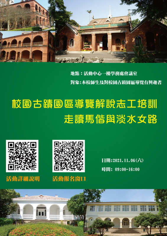 歡迎參與校園古蹟園區導覽解說志工培訓活動(2021.11.06)